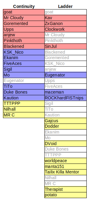 If we had used this algorithm to draw up divisions for Season 12 (assuming the players who initially registered - i.e. Kaution and not Tailix) then we would have seen the following.
